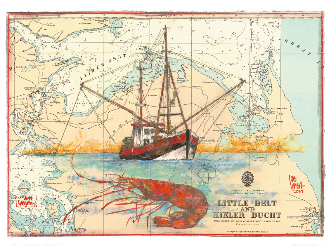 Kunstdruck einer übermalten Seekarte von Ole West.