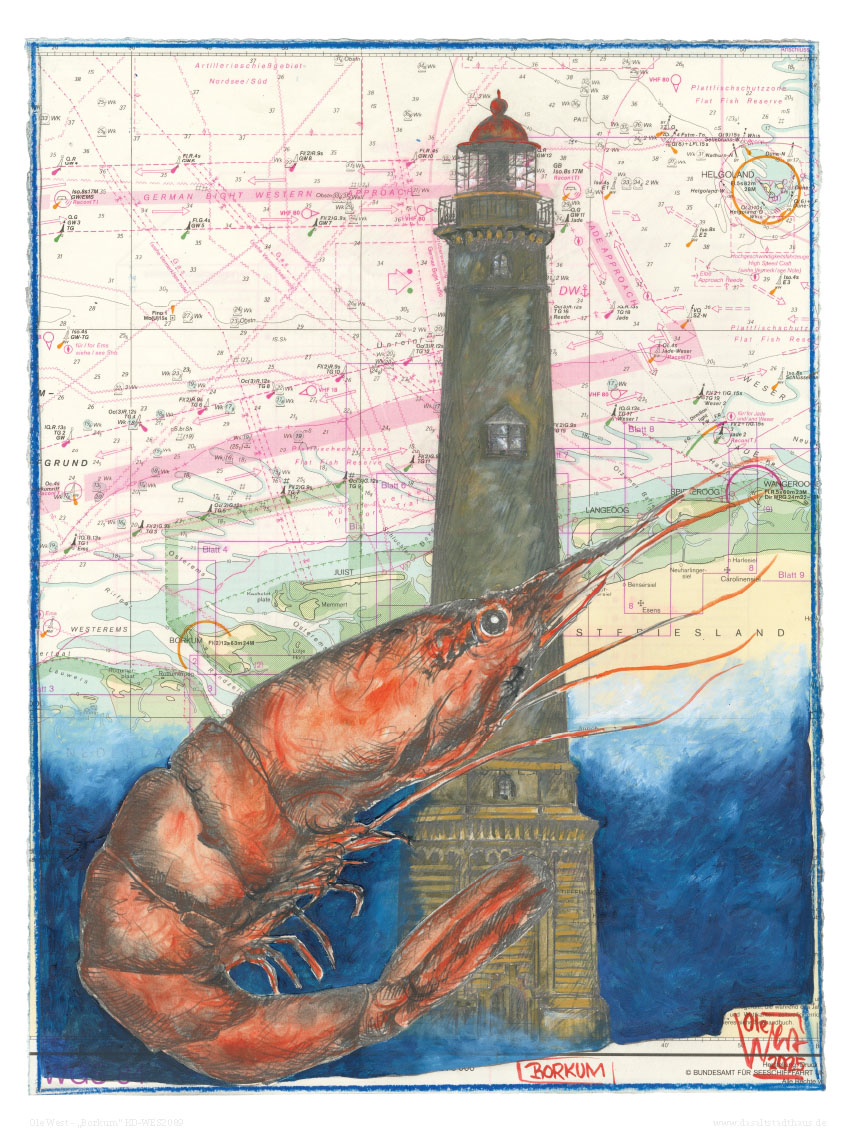 Kunstdruck einer übermalten Seekarte von Ole West.