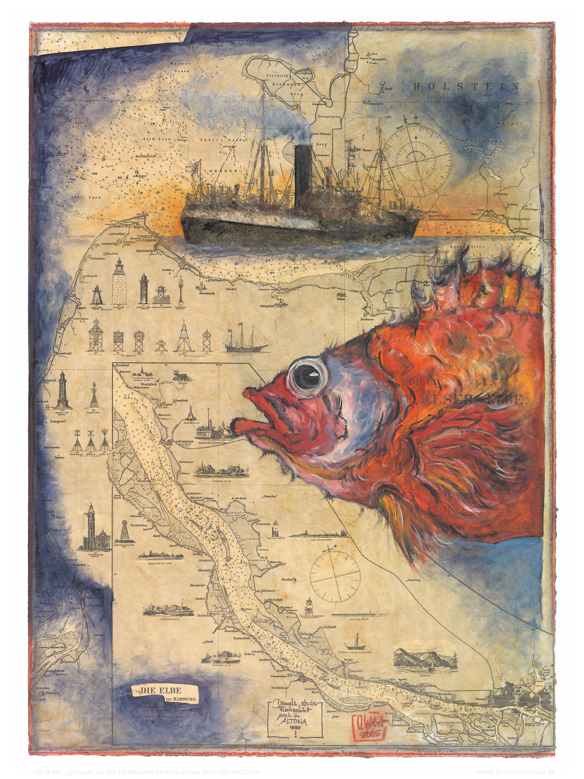 Kunstdruck einer übermalten Seekarte von Ole West.Ein Klassiker - und immer wieder schön!