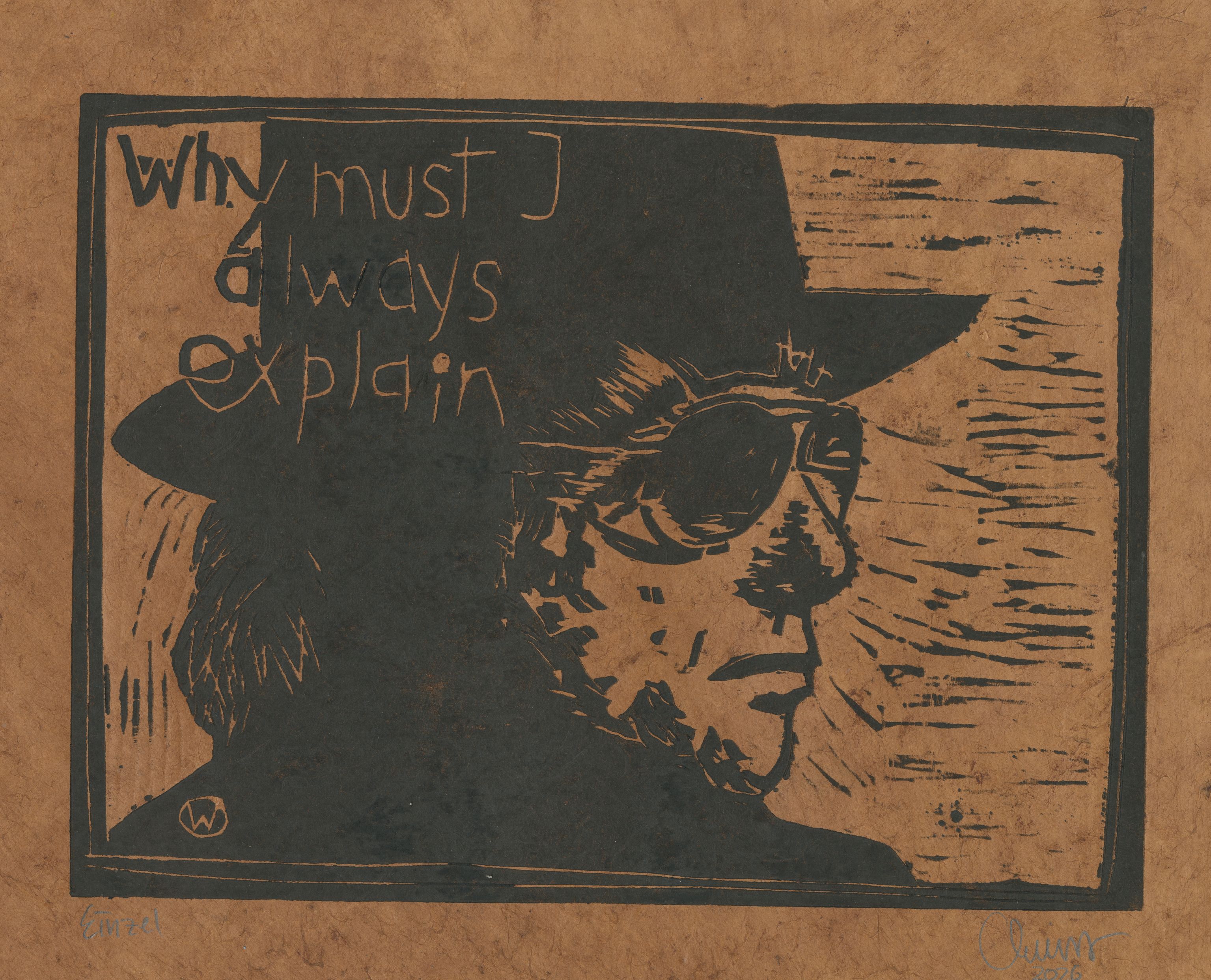 ORIGINAL-HOLZSCHNITT - "Why must I always explain (Van Morrison)" - braunes Naturpapier