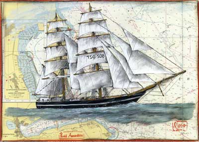 Kunstpostkarte von OLE WEST "Der Hafenmeister" Größe: DIN A6